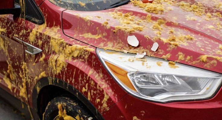 I thought that was the end of it—until Saturday morning. Looking out the window, my heart sank. My car was plastered with eggs, yolk dripping down the windshield in sticky streaks. Toilet paper hung from the mirrors and trees like mocking decorations. I ran outside barefoot, horrified. My mom followed, speechless.