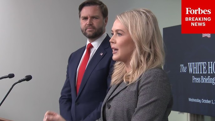 At a recent media briefing, an unexpected moment between Caroline Leavitt and Senator JD Vance has taken the internet by storm. What started as a routine press event turned into one of the most discussed clips of the week — all because of a few seconds of awkward body language, a cough, and a thousand unanswered questions.