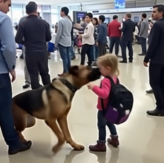 As Max approached a cluster of passengers, his behavior changed abruptly. His ears perked up, and his tail stood rigid. A low growl emanated from his throat, and he began to bark sharply, his focus narrowing in on a seemingly innocuous child’s backpack resting on the floor beside a young boy. The sudden outburst caught the attention of nearby travelers, who paused their conversations and turned their eyes toward the source of the commotion.