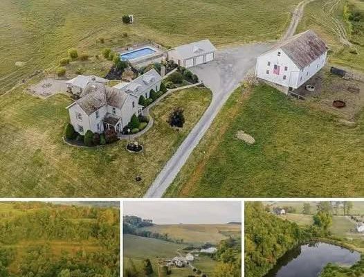 Furthermore, several outbuildings add both character and practicality. Moreover, the property includes a heated three-bay garage, a historic bank barn with a stone foundation, a hog house, and a chicken coop. Outdoor features include covered porches, a heated in-ground pool with a deck and waterfall, and wide country views. Free natural gas powers the home, pool, and garage.