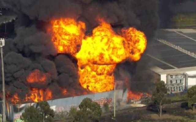 Witnesses described dramatic scenes as barrels and containers inside the warehouse overheated and launched into the air. Ravenhall worker Trent Chamberlain, whose office is three kilometres away, said the fire’s scale was alarming.