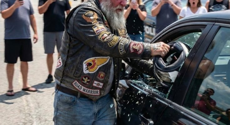 On a sweltering 97-degree Saturday, the parking lot was shimmering with heat when a massive, tattooed biker named Earl rumbled into view. I watched from a distance as he pulled a tire iron from his saddlebag and shattered the driver-side window of a luxury black BMW. Terrified and acting on impulse, I immediately dialed 911 to report a violent crime in progress, assuming I was witnessing a brazen theft or an act of senseless vandalism. My heart pounded with fear as Earl reached into the glass-strewn interior, but my perception shifted instantly when he pulled out a limp, blotchy infant instead of a stereo or a handbag.