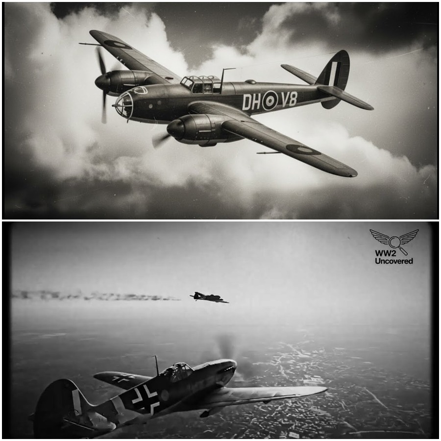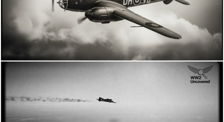 the words tasting like defeat. The British bomber had no gun turrets, no defensive armament visible through the crystal clearar September sky, just a sleek wooden fuselage painted in photo reconnaissance blue. Twin engines humming with confidence that boarded on mockery. The pilot was Flight Lieutenant D A George Perry of number.